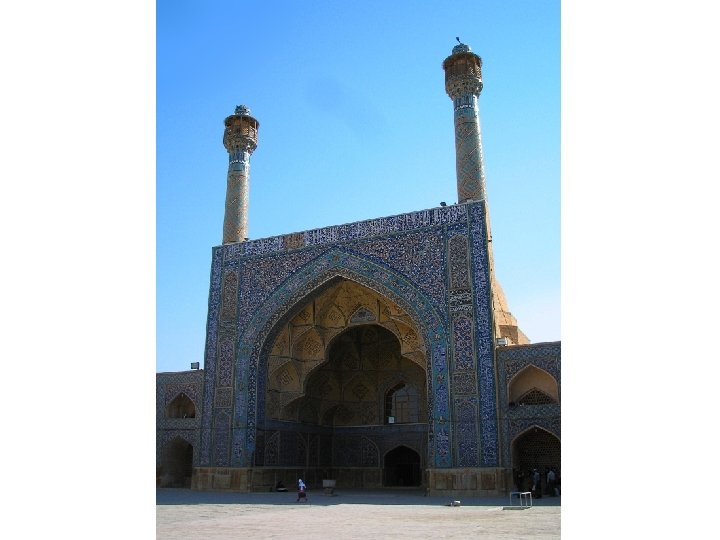 • Safavid architecture is best known from the urban program completed in Isfahan. • The urban program initiated at this time consisted of an axial arrangement of new royal markets that linked the old city center to a new arrangement of markets, mosques, and the royal palace that opened onto a monumental and multifunctional rectangular space known as the maidan. • This new arrangement, and the aristocratic quarter of palaces and gardens that was developed west of the maidan behind the royal palace became Isfahan's new political and commercial center. • Safavid mosque architecture illustrates the Safavid continuation of earlier Timurid and Persian traditions of brick construction combined with glazed tile revetment and the use of formal elements like the pishtaq (monumental arched portal) and the four-iwan plan.