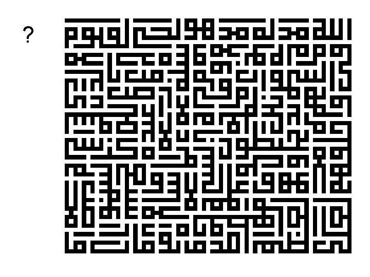 • • Kufi was the dominant priestly script in early times. It was created after the establishment of the two Muslim cities of Basrah and Kufah in the second decade of the Islamic era (8 th century A. D. ). The script has specific proportional measurements, along with pronounced angularity and squareness. It became known as al-Khat al-Kufi (Kufi script). Kufi script had a profound effect on all Islamic calligraphy. In contrast to its low verticals, Kufi has horizontal lines that are extended. The script is considerably wider than it is high. This gives it a certain dynamic momentum. The script often is chosen for use on oblong surfaces. With its glorious Handasi (geometrical) construction, Kufi could be adapted to any space and material -- from silk squares to the architectural monuments left by Timur at Samarqand. Because Kufi script was not subjected to strict rules, calligraphers employing it had virtually a free hand in the conception and execution of its ornamental forms.