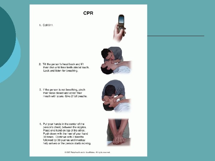 In the case of a serious accident 1. Stay calm, act quickly 2. Call or get someone to call for emergency services. 3. Check if patient is conscious. 4. If unconscious check for breathing and pulse, use CPR if necessary.