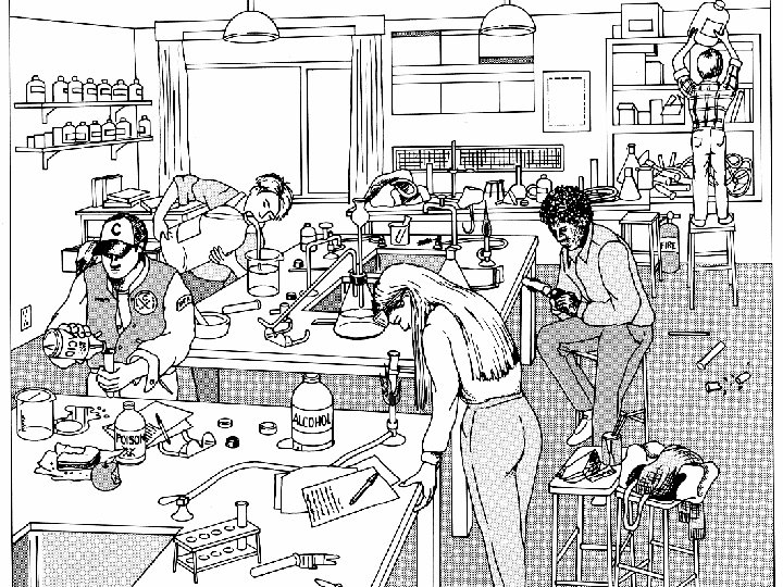 Lab Safety Rules – THINK!! • • • If acid or any chemical is splashed in your eyes, FLUSH them with lots of water for at least 10 minutes (at the eyewash station if available). When heating a test tube containing a liquid, heat GENTLY and point the tube away from anyone. Slant it towards the wall. Keep your SAFETY GOGGLES on, when told to do so by the teacher. Clamps holding material to the edge of the desk must be pointed down. Quickly rotating materials should be thoroughly checked prior to the beginning of the experiment. A small piece of material moving quickly has a tremendous potential to damage. Be familiar with the LOCATION and USE of safety equipment in the classroom or lab (e. g. fire blanket, fire extinguisher, safety goggles, first aid kits, etc. )