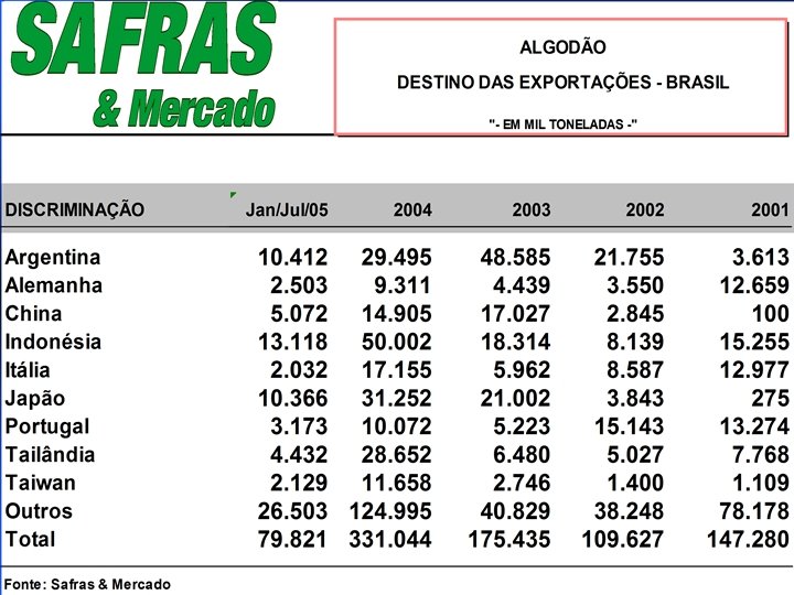 ALGODÃO MERCADO EXTERNO n n n REVERSÃO DE TENDÊNCIA DE PREÇOS NO MERCADO EXTERNO; PRODUÇÃO NO HEMISFÉRIO NORTE REVISTA PARA CIMA; CONSUMO EM CONTÍNUA EXPANSÃO, PRINCIPALMENTE NA CHINA. IMPASSE COMERCIAL SUBSÍDIOS AGRÍCOLAS