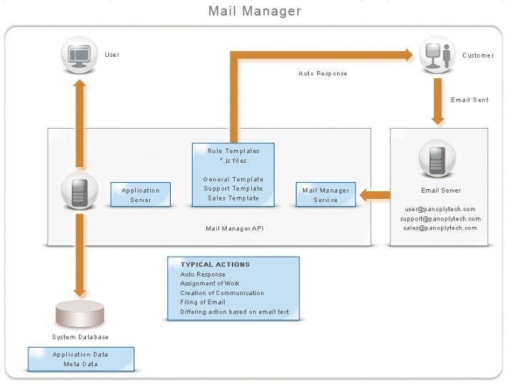 Advanced Email Manager Support for e-mail MAPI and POP Allows separate inbound/outbound mail servers Secure SMTP supported External databases may be read and written to via the custom scripting aspect. Each mailbox is accessed and controlled by its own thread within the application.