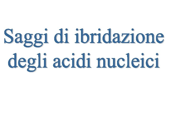 Saggio di ibridazione Il saggio di ibridazione degli acidi nucleici richiede la formazione di eteroduplex tra sonde marcate a singolo filamento e sequenze complementari all’interno di un bersaglio molecolare