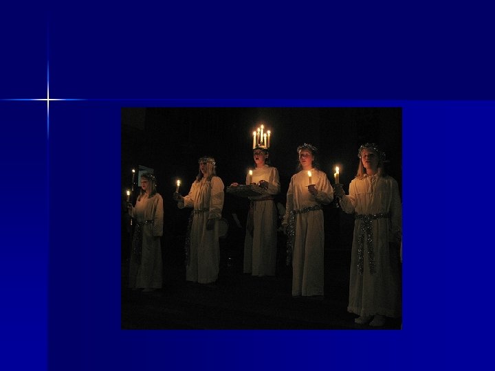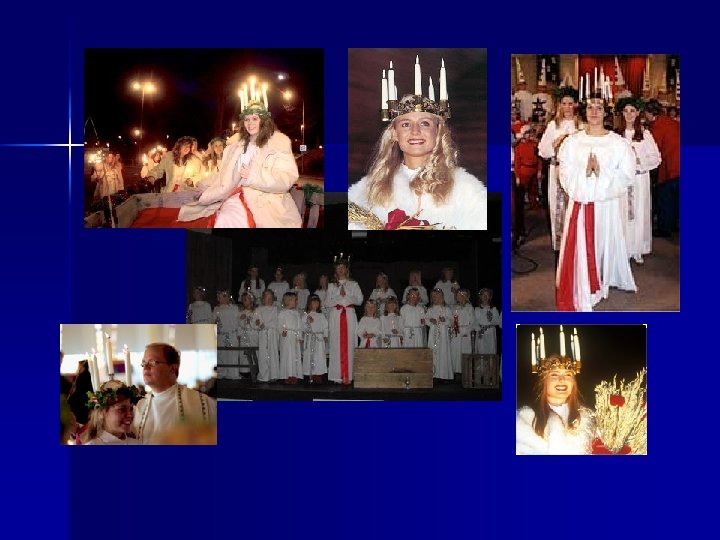 Today, all over Sweden and Swedish America, young women in long white gowns, accompanied by Star boys and attendants, appear to herald the return of light to the earth and the birth of Christ.