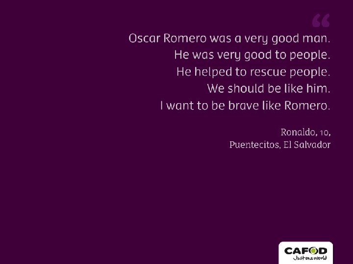 “ A civilisation of love that did not demand justice of people would not be a true civilisation Saint Oscar Romero