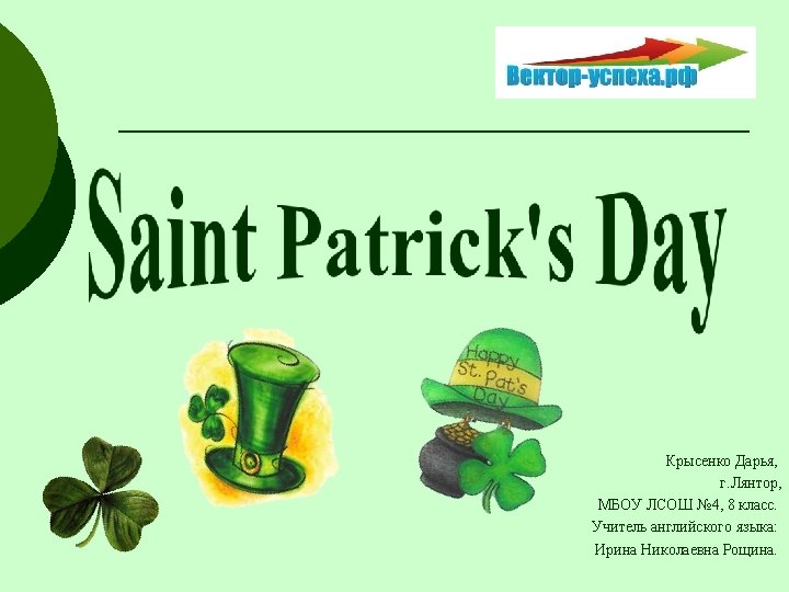 Resources http: //en. wikipedia. org/wiki/Saint_Patrick's_Day http: //ru. wikipedia. org/wiki/Святой_Патрик http: //www. 973 jack. fm/st-patricks-day-fun-facts http: //02 varvara. wordpress. com http: //10 mag. com/319 -st-paddys-day http: //www. foundus. com/holiday/st%20 patrick http: //www. goireland. com/St-Patricks-Footsteps http: //katherineqiao. wordpress. com/tag/st-patricks-day http: //ru. wikipedia. org/wiki/Saint. Patrick 29. jpg http: //en. wikipedia. org/wiki/Patrick. Wall. Fourth. Window. Saint. Patrick. jpg http: //wikimedia. org/wiki/Leprechaun_ill_artlibre_jnl. png
