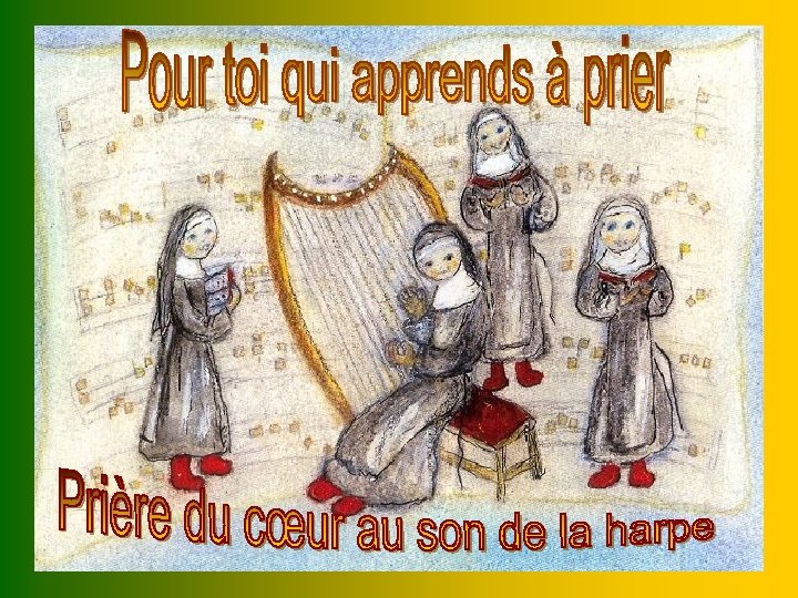 La harpe médiévale accompagne la liturgie des heures, célébrée en latin et en chant grégorien par les moniales bénédictines de l’Abbaye Sainte-Marie des Deux. Montagnes, de la Congrégation de Solesmes. Toi en moi et moi en toi