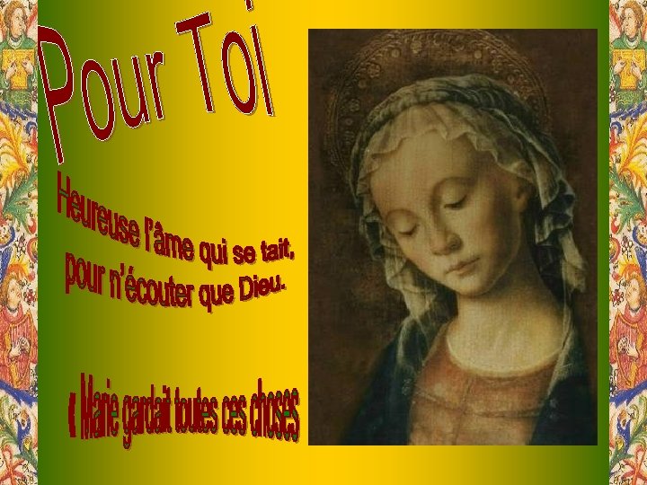 Sainte Gertrude était peinée de ne pas prier aussi bien qu’elle aurait voulu. Alors Jésus ne put souffrir qu’elle se désole; il lui présenta son Cœur: « Voici que je te donne mon Cœur sacré, harpe de la Trinité Sainte. Prie-le de réparer les fautes de ta vie; tes œuvres deviendront alors parfaites devant mes yeux. Mon Cœur restera toujours à ta disposition… » moi n e i o T toi n e i o et m