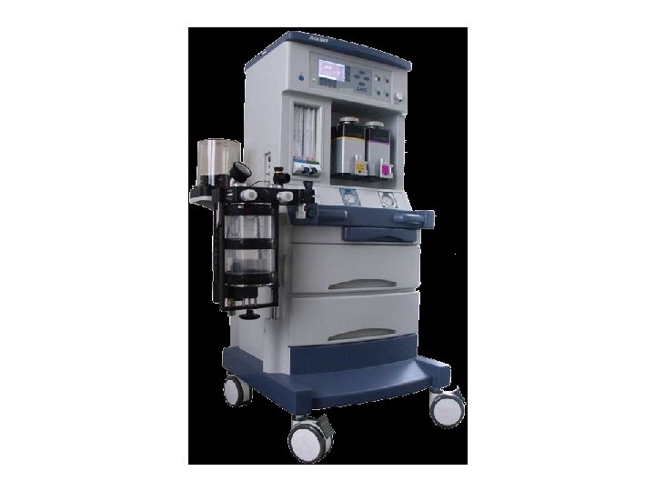 MAQUINA DE ANESTESIA • Podemos decir que la maquina de anestesia tiene dos partes: 1. Ventilador 2. Maquina de anestesia
