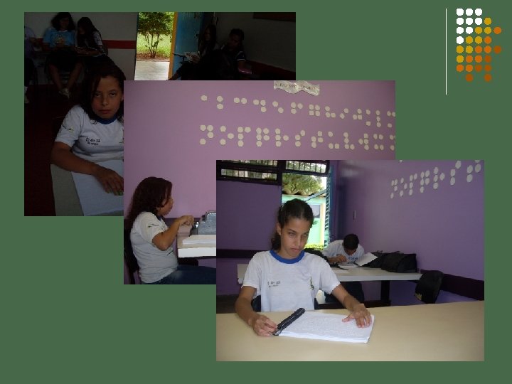 Reimprimindo a Acessibilidade Nesta sala de recursos fazemos a transcrição para o Braille do livro didático adotado em sala, bem como de atividades extras, mas estas últimas procuramos transcrever na própria máquina Braille a fim de não sobrecarregar o CEEDV (Centro de Ensino Especial para deficientes visuais) que é o responsável pela produção e impressão do material de toda a rede pública.
