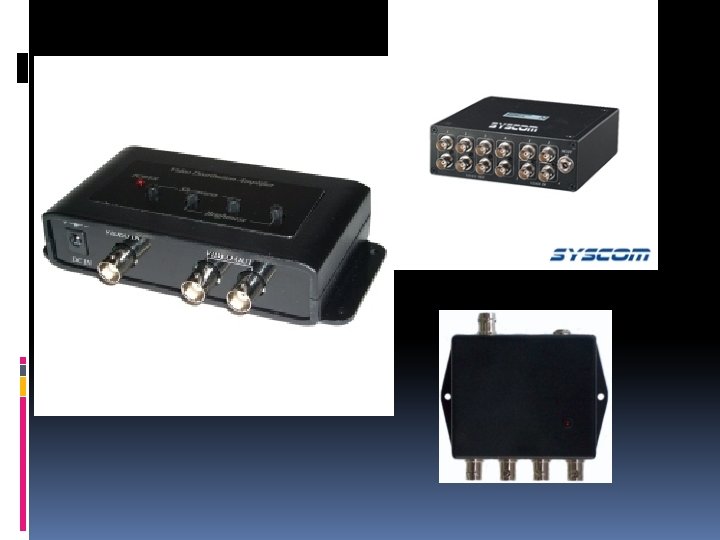 DISTRIBUIDOR DE VIDEO Un distribuidor de video o VDA, es un circuito activo que multiplica la señal entrante sin pérdidas. Puede tener 4 o más salidas de video compuesto. En algunos casos puede corregir video y croma. También existen distribuidores de audio o ADA, que tienen 4 o mas salidas que en algunos casos tiene variaciones independiente de nivel por salida. En otros casos se controla el nivel y balance de todas las salidas al mismo tiempo.