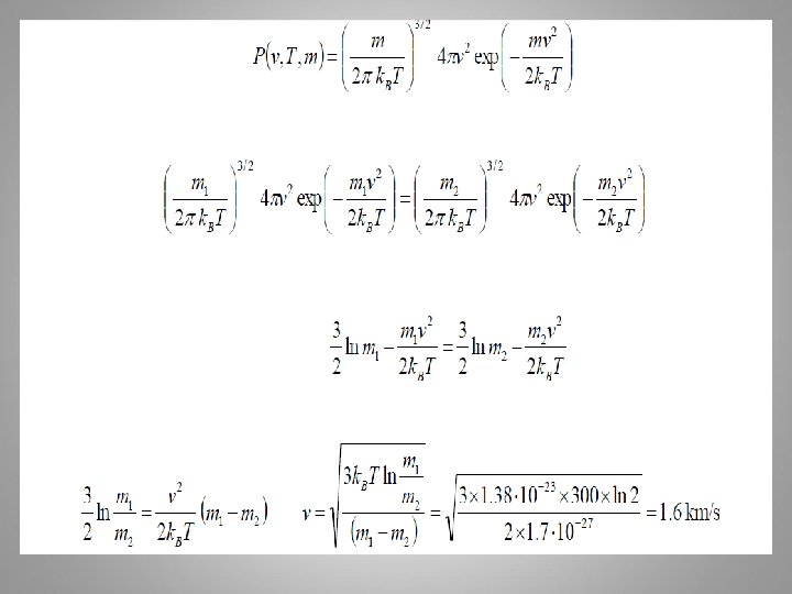 H. W • Given the distribution function: • Consider a mixture of Hydrogen and Helium at temperature T. In term of T, K, and m, find the speed at which the Maxwell distributions for these gases have the same value.