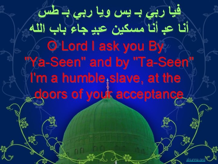 ﺭﺑﻲ )ﺑﺠﺎﻩ( ﻃﻪ ﻻ ﺗﺨﻴﺐ ﺃﻤﻠﻲ O Allah we ask by the virtue of our Prophet , do not let us down alsunna. org