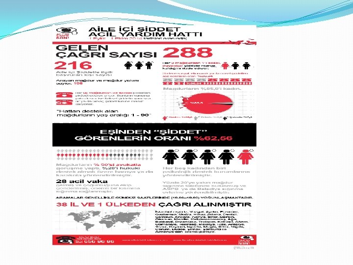 KADINA ŞİDDET �Aile İçinde Kadına Uygulanan Şiddeti Ortaya Çıkaran ve Pekiştiren Faktörler: �Kadın ve erkeğe yüklenen roller ve beklentiler �Erkeğin güçlü, kadının zayıf olduğu inancı �Erkeklerin şiddeti uygulamasının normal olduğu görüşü �Ailenin öze alan olduğu ve bu alanın erkeğin kontrolünde olduğu görüşü �Ailenin, devletin müdahale alanı içinde yer almadığı görüşü �Kadının ekonomik olarak erkeğe bağımlı hale getirilmesi