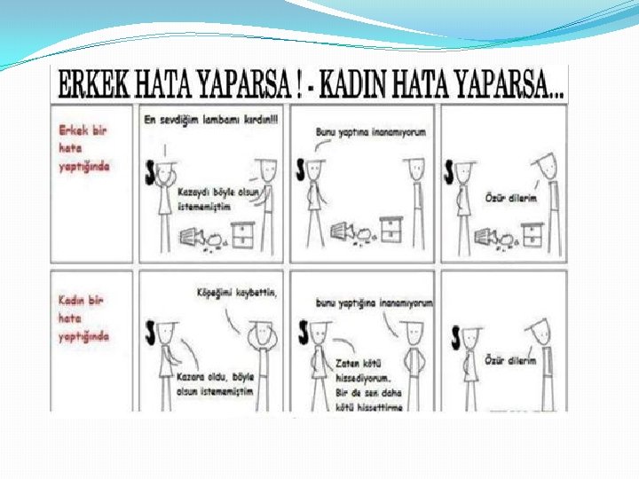 Erkeğe şiddet �Kadın zarif ve korunmasız bedeni gereği belki erkekten daha çok şiddete maruz kalıyor. Ama günümüz Türkiye’sinde bir tek kadın mı şiddet görüyor? �Günümüz Türkiye’sinde kadına şiddet kadar ilgi görmese dahi kadınların erkeğe karşı şiddeti de kaçınılmaz bir gerçektir. Kadın kadar olmasa da zaman erkeklerin kadınlardan gördüğü şiddet haberleri, erkeklerin kadınlardan şikâyetlerini ve emniyet güçlerine sığınmalarını görüyor ve duyuyoruz.