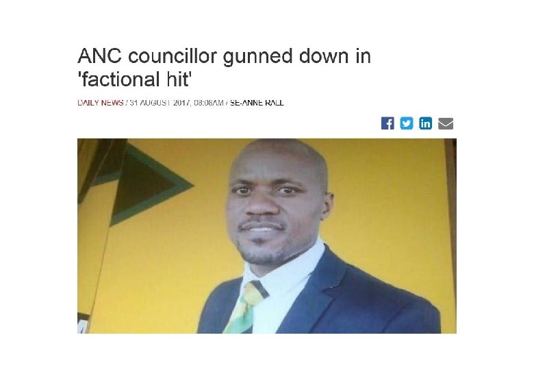 INTIMIDATION & KILLING OF COUNCILLORS AND MUNICIPAL MANAGERS • If not curbed, councillor and municipal manager intimidation and killing could cause fragility of Local Government. • It is believed that most political killings and intimidations directed at Cllrs and MMs emanate from local rivalries (Duncan: 2010). • Positive change-motivated community members may be forced out of office or become less inclined to contest for public office. • This may leave the way wide open to unscrupulous citizens to contest for public office.