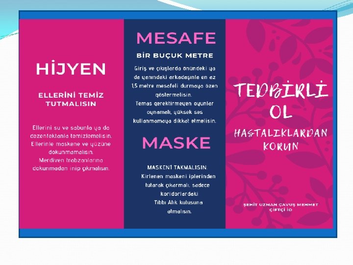 �Merdivenleri kullanırken, tırabzanlara ve duvarlara dokunmam. �Okula giderken hiçbir nesne ve kişiyle fiziksel temas kurmam.