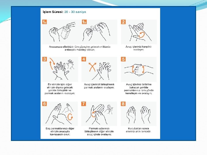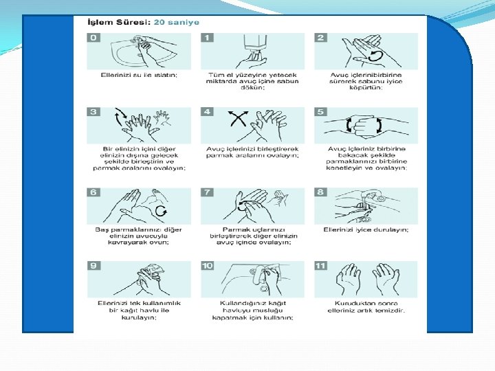 � � · �Ellerimi; kirlendikçe ya da elimi yüzüme, gözüme, ağzıma temas ettirmek zorunda kaldığım zamanlarda en az 20 saniye süreyle SU ve SABUN ile yıkarım. �Ellerimi su ve sabun ile yıkayamadığım durumlarda el antiseptiği veya alkol bazlı �kolonya ile dezenfekte ederim. �Yemeklerden önce ve sonra ellerimi su ve sabun ile yıkarım.