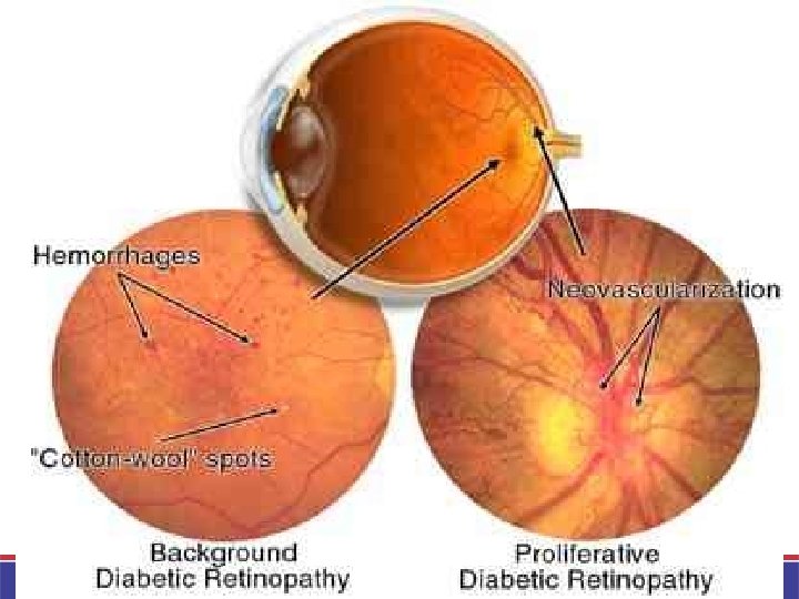 • Retinopati: Retina damarları vücudun en hassas damarlarından biridir. Retinadaki damar hasarları, mikroanjiopatiler başlar ve hastalık tablosuna göre ilerler.