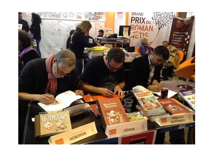 Vendredi 20 mars : Réunion nouvelle vague Rencontre avec Jean-François Samlong et Jean-Noël Schifano, directeur de la collection Continents noirs chez Gallimard, animée par Hubert Artus, Lire. Samedi 21 mars : Caricaturistes d’Outre-mer Rencontre avec Li-An (Réunion, absent pour cause de grippe), François Gabourg (Martinique) et André Pangrani, rédacteur en chef de la revue Kanyar, et créateur de la revue Le cri du Margouillat. André Pangrani au micro , François Gabourg au crayon