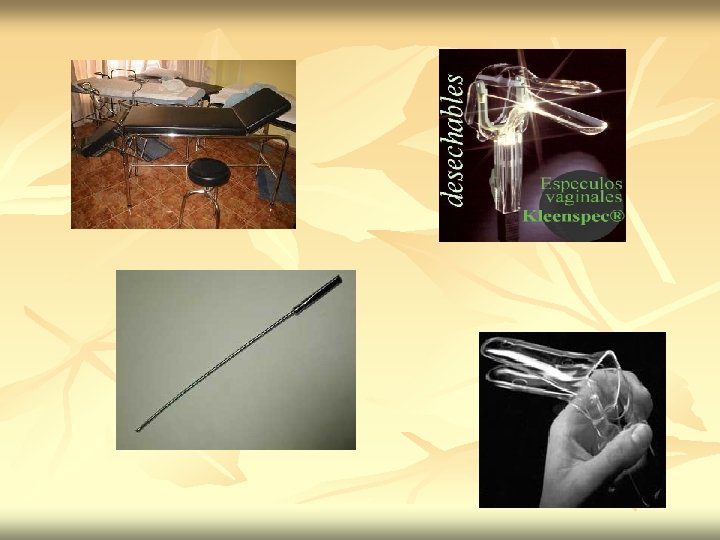 n n Equipo toma de PAP (espátula de ayre, torulas, vidrios de borde esmerilado y fijador citológico) Lámpara de pie, biombo, balde con agua clorada. Guantes estériles y de procedimiento. Povidona yodada y suero fisiológico.