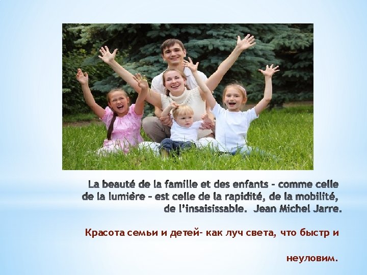 * Salut, les enfants. Aujourd’hui nous avons une leçon extraordinaire. Je suis choquée par ce vidéo magnifique, je suis pleine d’émotions ! J’ai même oublié le thème de notre leçon !