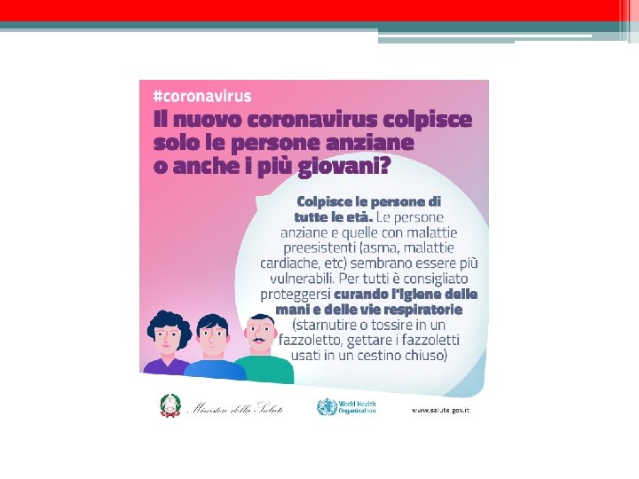 • Le persone più suscettibili alle forme gravi sono gli anziani e quelle con malattie pre-esistenti, quali diabete e malattie cardiache.