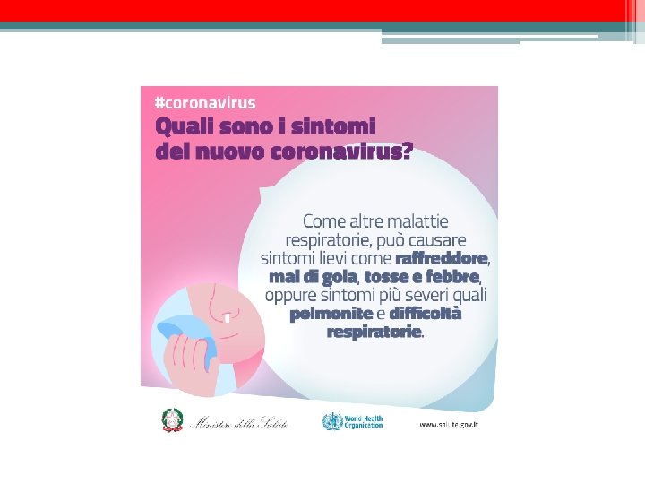 Sintomi • I sintomi più comuni di un’infezione da coronavirus includono febbre, tosse, difficoltà respiratorie. Nei casi più gravi, l'infezione può causare polmonite, sindrome respiratoria acuta grave, insufficienza renale e persino la morte