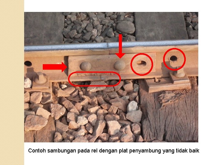 Contoh sambungan pada rel dengan plat penyambung yang tidak baik