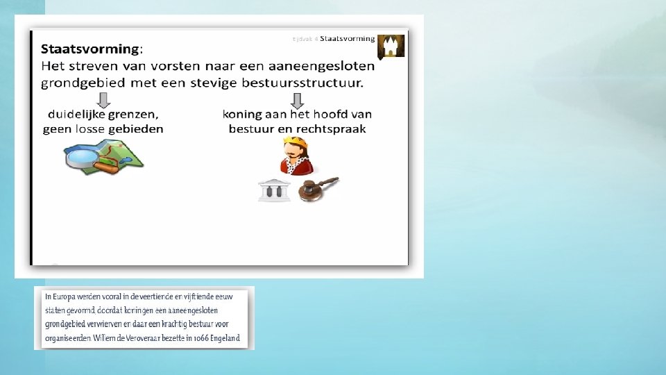 • In Frankrijk valt het feodalisme juist wel uit elkaar en dan krijg je dus GEEN staatsvorming. • In 14 e eeuw honderdjarige oorlog heeft te maken met dat feodale stelsel: koning van Engeland is namelijk ook een leenman van de koning van Frankrijk. Groen gebied rondom Bordeaux. Als de Franse koning sterft: wie gaat hem opvolgen? Engelse koning als Franse edellieden maken aanspraak op de troon. Daaruit volgt een serie van oorlogen die gewonnen wordt door …