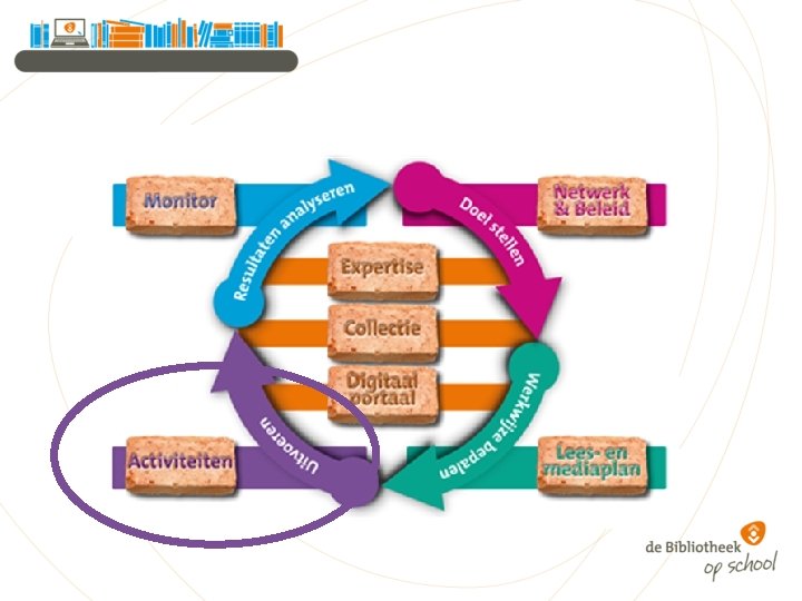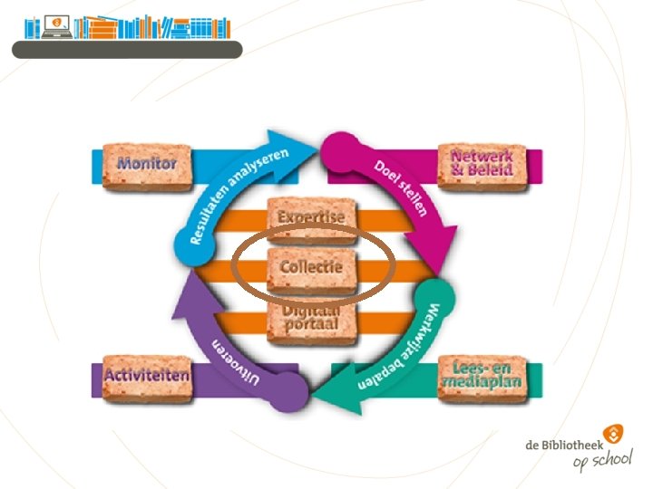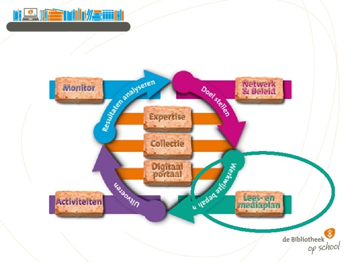 Terug naar matrix Netwerk en beleid: = randvoorwaarde voor succes • een gezamenlijke visie op lezen en mediawijsheid • een gezamenlijke intentie om te investeren in mensen en middelen • een gezamenlijke intentie om per school de meest optimale Bibliotheek op school neer te zetten • een gezamenlijke strategie om dit te bereiken