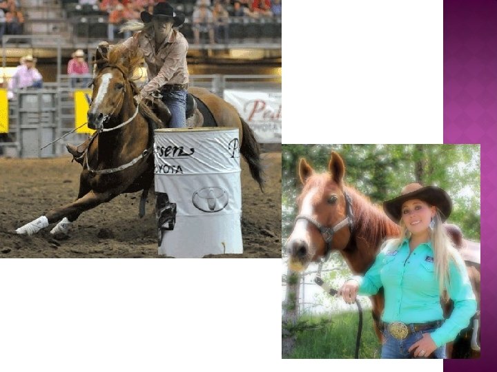 CONTINUED… � 2010 WRA Finals Qualifer � 2010 WRA Average Champion � 2010 WRA State Reserve Champion � 2011 Evergreen PRCA Champion Barrel Racer � 2011 Walden CPRA Champion Barrel Racer � 2011 Kremling CPRA Champion Barrel Racer � 2011 4 th CPRA Finals, & Fast Time of 2011 CPRA Finals � 2011 WPRA Mountain States Finals Qualifer � 2011 WRA Reserve State Champion � 2012 Steamboat Springs PRCA Champion Barrel Racer � 2012 CPRA Finals Qualifer and 5 th in the State � 2012 WRA Finals Qualifer and Average Champion