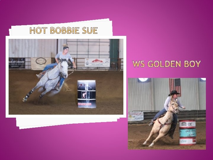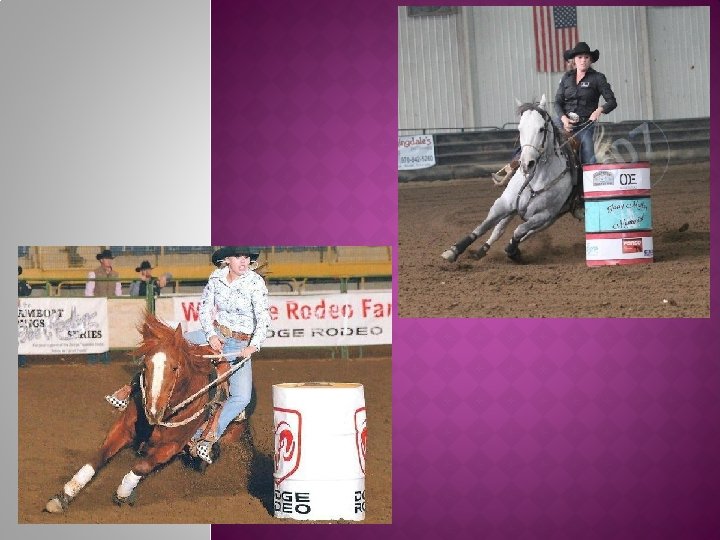 CONTINUED… 2014 CPRA Finals Qualifier � 2015 BBR Qualifier � 2015 Nothing But Barrels Finals Qualifier � 2016 WRA Finals Qualifier � 2016 High Country Stampede Barrel Racing Win � 2016 Top 10 State WRA � 2016 National Western Stock Show APHA Grand Champion � 2016 National Western Stock Show AQHA Reserve Grand Champion � 2016 National Western Stock Show Shoot out round Champion Barrel Racer � 2017 WRA Finals Qualifier � 2017 Top 10 State WRA � 2017 WPRA Money Won �