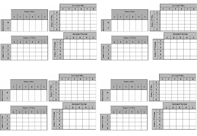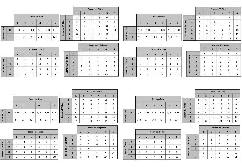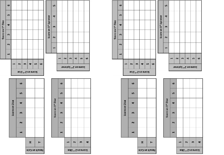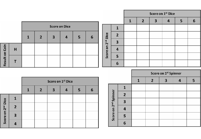 Sample Space Diagrams – Bingo Method Students should choose nine answers from the grid and place them randomly into a 3 x 3 square in their book. You may want to pause your display and choose questions according to difficulty during the game. Depending on time, students could win with a line, an X, or a ‘full house’ (all).