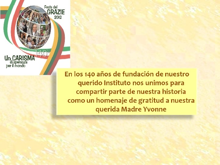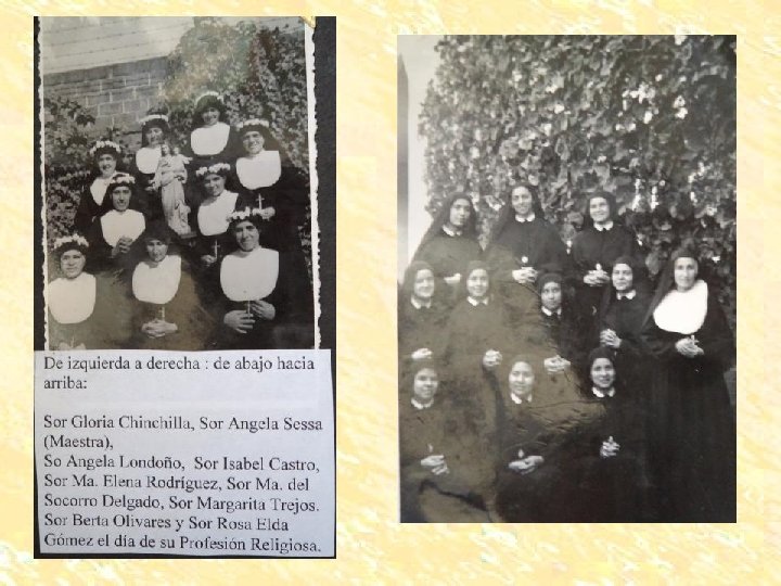 Sor María Romero Madre Covi Madre Genzone 1. 2. 3. 4. 5. 6. 7. 8. 9. 10. 11. 12. 13. 14. 15. 16. Carmela Arrea María Romero Adela Bureli Conchita Ballestero Conchita Blínder Antonieta Navarro Ester Volpe Angelita Sessa Esther Alfaro Rosario Quesada María Peraza Marianita Maresca María Aráuz María Canales Victoria Hernández Virginia Valverde 17. Claudina Pereira 18. Irma Ampié 19 Elvira Mejía 20. Catalina Talpone 21. María Zanatta 22. Anita Covi 23. Josefina Genzone 24. Dolores Argüello 25. Dolores Ruiz
