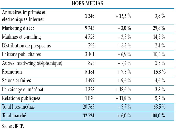 La répartition des dépenses de communication entre médias et hors-médias