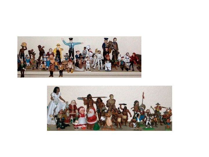 2. Kolekcja figurek (kilkaset) składającą się z miniatur, reprezentujących możliwie jak najwięcej elementów i aspektów rzeczywistego świata. • Reprezentują one obiekty od świata minerałów poprzez rośliny, zwierzęta, ludzi, wytwory kultury, istoty prehistoryczne mityczne, fantastyczne, wytwory wyobraźni zbiorowej imaginacji.