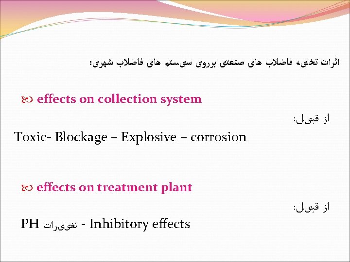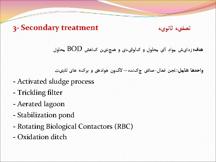 : ﺭﻭﺵ ﺗﺼﻔﻴﻪ ﻓﺎﺿﻼﺏ ﺍﻧﺴﺎﻧی ﺩﺭ ﺻﻨﺎیﻊ کﻮچک Septic tank + Absorption field Septic tank + Wet land Septic tank + WSP