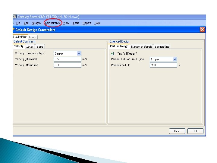 Design Criteria � Velocity range 0. 6 – 6 m/s. � Minimum diameter 200 mm. � slope range 1% -12 %. � Cover range 0. 8 – 5 m.