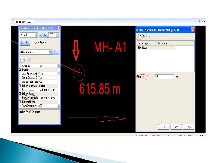 Sample Calculation � Total number of manholes is 1146. � Total length of pipes is 33. 739 km. � The diameter of pipes vary between 200 mm and 300 mm � Total � 93% number of outfalls is 3. of the town is served.