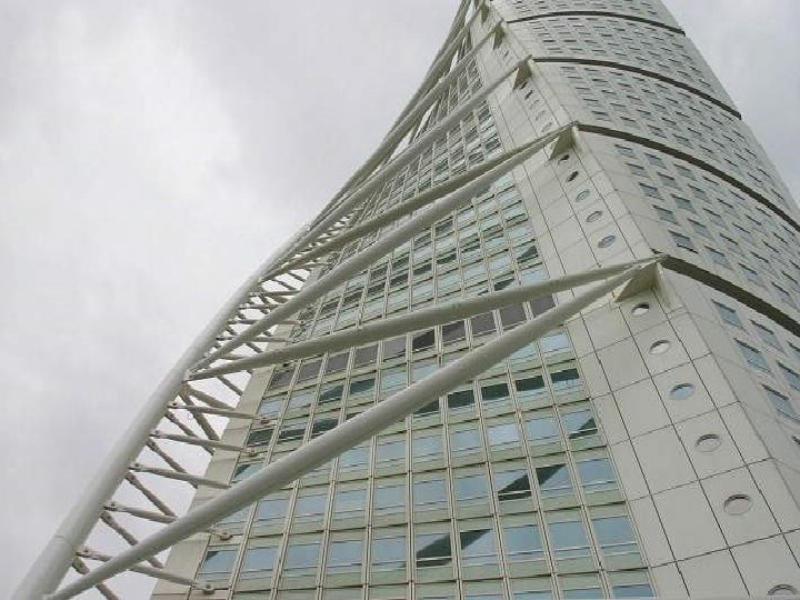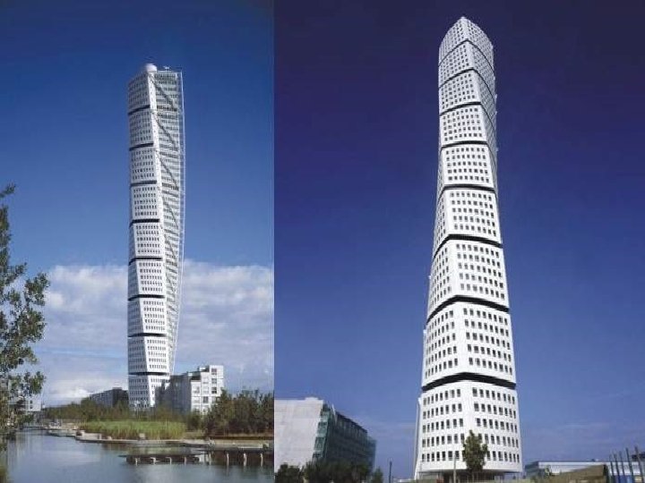 Turning Torso : Turning Torso a remporté à Cannes en 2005 le prix MIPIM du meilleur bâtiment résidentiel. à Malmö Suède, 2001 ÷ 2005 Inspirée du corps humain, Tuning Torso, se présente sous la forme d’une empilement de neuf cubes décalés les uns par rapport aux autres et créant ainsi une impression de dynamisme et de tension. Cet édifice comprend 54 étages partagés entre des bureaux, des logements, et des espaces de réunions. Click = Continuare