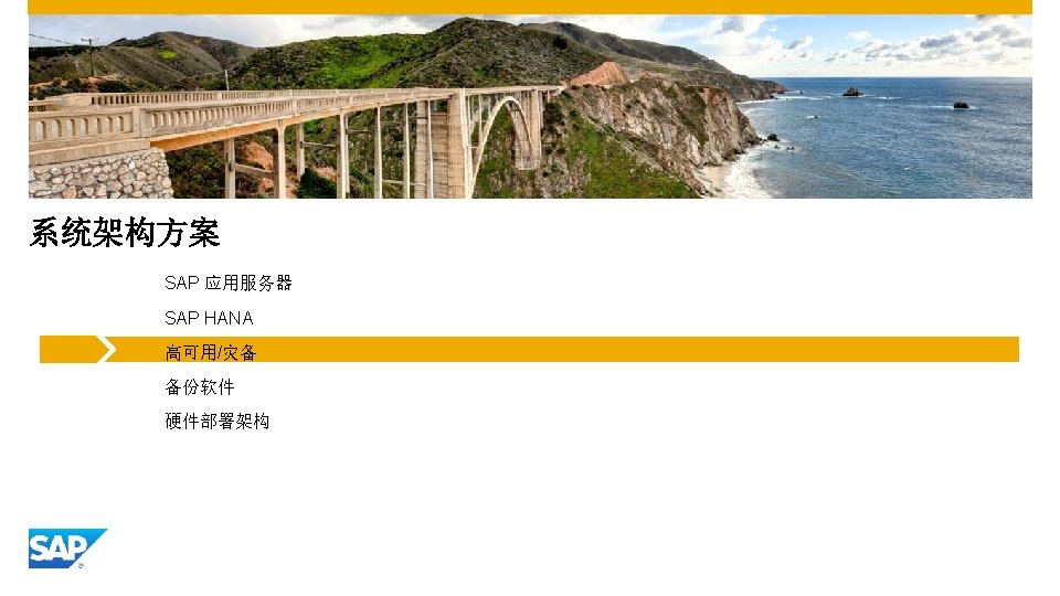 数据中心策略 – 高可用及灾备方案 玉林移动通讯公司IDC ~10 KM 玉柴动力大厦数据中心 AS (A) AS (J) VM VM ASCS Inactive SCS Linux HA Cluster ERS(A) ERS(J) WD WD VM VM Server Node 两个相近的数据中心使用高可用和灾备组合架构 ERP应用服务器架构 应用服务器全部部署在虚拟机上 核心应用服务(消息、队列服务等)部署在Linux高可用集群,保证系统服务层面的 高可用 SAP HANA利用System Replication进行同步复制,并结合Linux高可用集群软件实 现高可用和灾备 Linux HA Cluster Synchronous System Replication 数据中心设置 SAP HANA架构 VMware ESX Cluster SAP HANA ERP on HANA 生产系统 SAP HANA Server Node © 2016 SAP SE or an SAP affiliate company. All rights reserved. Customer 42