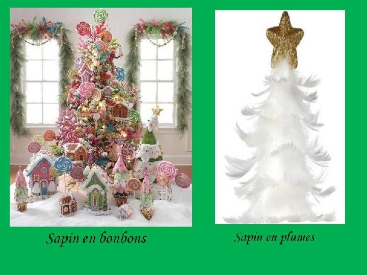 • Que serait Noël sans le traditionnel sapin à décorer? Entre les sapins multicolores, les sapins bicolores dont le choix des couleurs a fait débat au sein de la famille, où encore les sapins monochromes, toutes les fantaisies sont permises. • Et à travers le monde, les villes ne lésinent pas non plus sur les décorations de Noël. Là encore, elles rivalisent d'originalité