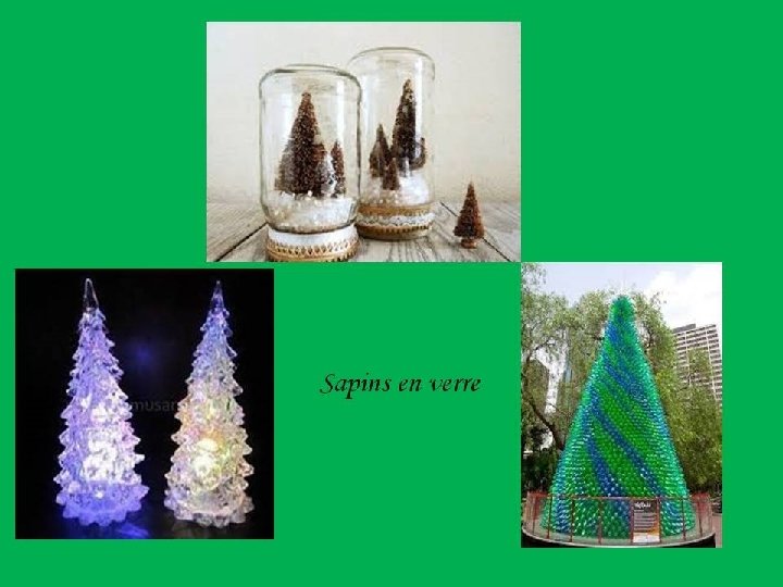 • Les décorations • Aux XVIIe-XVIIIe siècles, les sapins sont illuminés par de petites bougies. • Il faut attendre 1880 pour que les premières décorations électriques apparaissent, aux Etats-Unis. • Jusqu'en 1950, c'est en majorité en Allemagne et en Europe de l'Est que sont produites les décorations de Noël. • Les personnages sont généralement fabriqués en coton et les cheveux d'anges en fibres métalliques. • Quant à la boule de Noël, il s'agit, à l'origine, d'une pomme. • C'est en 1858 qu'un artisan verrier a eu l'idée de créer la boule de Noël telle que nous la connaissons aujourd'hui, à la suite d'un hiver particulièrement rigoureux, qui avait eu pour conséquence d'affecter les récoltes