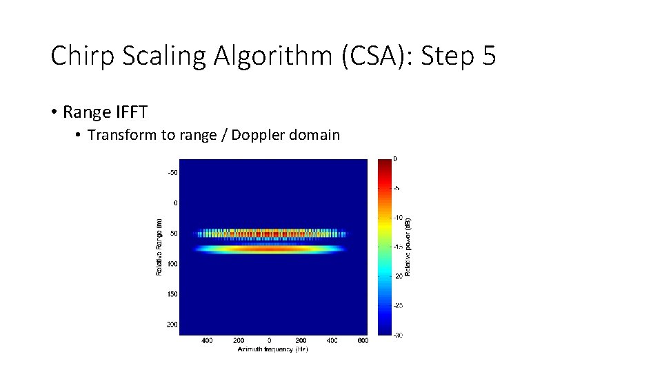 Chirp Scaling Algorithm (CSA): Step 5 • Range IFFT • Transform to range / Doppler domain