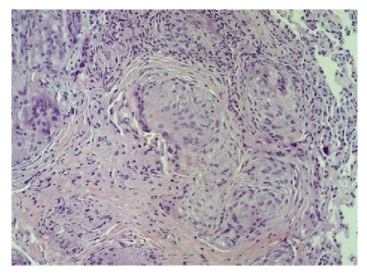 Pathology: transbronchial biopsy ØNoncaseating granulomas