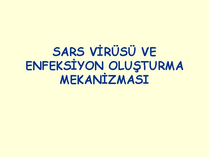 SARS VİRÜSÜ VE ENFEKSİYON OLUŞTURMA MEKANİZMASI