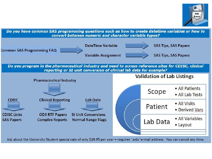 SAS Savvy Focused Online SAS Resource and Training Search SAS Savvy Procedures, Topics, SAS Resources, Common FAQ SASCommunity. org SAS Technical Tips SAS Documents Forums: Knowledge Database SAS Conference Papers