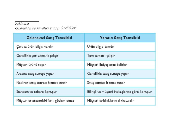 • Satışçı, satış önerisini satarken, aslında kendisi ile birlikte firmasını ve onun pazarlama programını satmaktadır. Bu nedenle satışçı pazarlama anlayışını iyi özümsemelidir.