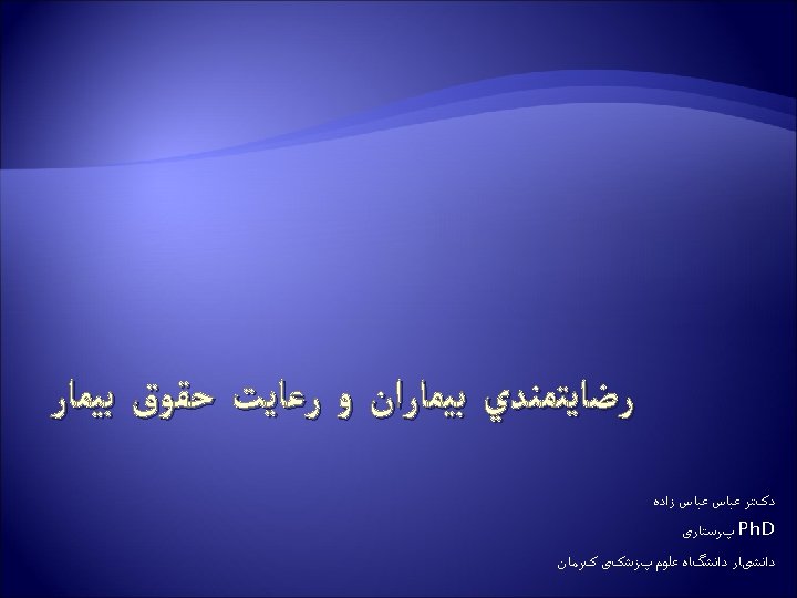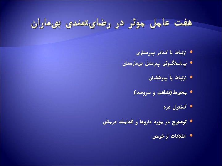 ﻣﺸکﻼﺕ ﺍﻧﺪﺍﺯﻩ گیﺮی ﺭﺿﺎیﺖ ﺑیﻤﺎﺭﺍﻥ Theoretical concentration on cognitive aspects assumption of continuum from satisfaction to dissatisfaction Epistemological scientific reliability and validity context and interaction between variables